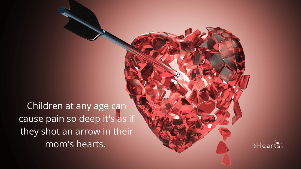 These mothers’ hearts have been damaged by separation and rejection. I think it’s hard for children of any age to realize they can cause pain so deep it’s as if they shot an arrow into their mom’s heart. Sometimes, there is apathy when the adult child is confronted, and other times angry, justified responses that feel sharp and piercing. They break their mother’s heart. After such harsh, tough conversation, a mom may fall into a heap and cry.