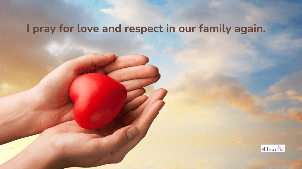 Dear Jesus, Heal my heart. I’ve been hurt so badly by these years of unfruitfulness. This relationship seems like a barren desert. Nothing good has grown for quite some time. But in faith, I ask for what I cannot see right now. I ask for unity in our family again. I ask for love and respect in our family once more and to see the fruit of the spirit evident in our relationship. Love, Joy, Peace, Patience, Kindness, Goodness, Faithfulness, Gentleness and Self-Control. Please help me to forgive and remember the good memories. I will bless my adult children with my mouth and say good things about them. Thank you for listening and understanding my broken heart in Jesus’ Name, Amen.
