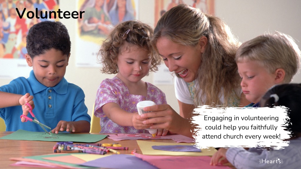 Another way to meet other churchgoers is by volunteering. There are so many areas/ways to serve. The obvious is children’s Sunday school and nursery, but there are many other ways. Greeter, usher, communion prep, coffee station, library, prayer team, worship and music. These are all good ways to meet others at church, and the other added benefit is that when you are scheduled to volunteer, it makes it easier to commit to church.